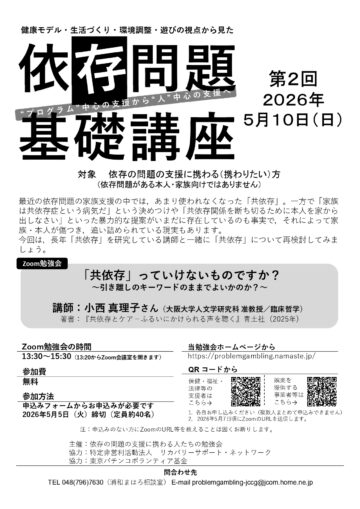 大阪大学人文学研究科の小西真理子准教授が、依存問題基礎講座のZOOM勉強会で講師を行います。テーマは「共依存」っていけないものですか?~引き離しのキーワードのままでよいかのか?~です。 最近の依存問題…